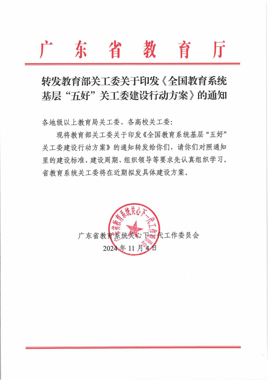 转发教育部关工委关于印发《全国教育系统基层“五好”关工委建设行动方案》的通知