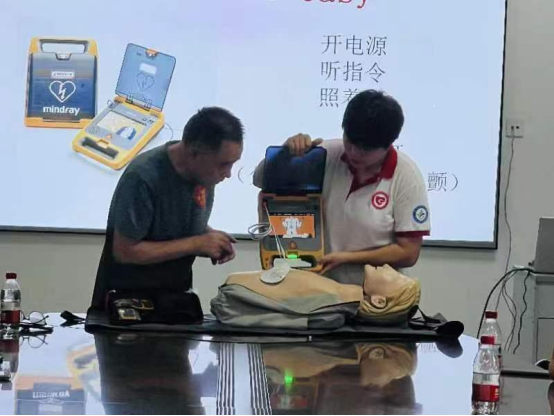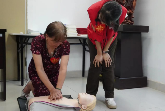 活动现场还发放了精心制作的宣传手册,并且有专业人员现场解答他们的疑问,老师们详细讲解示范了如何正确拨打120及正确呼救,实操心肺复苏和AED的使用、气道异物梗阻的急救方法。邀请离退休人员参与模拟演练,通过实际操作增强了记忆。