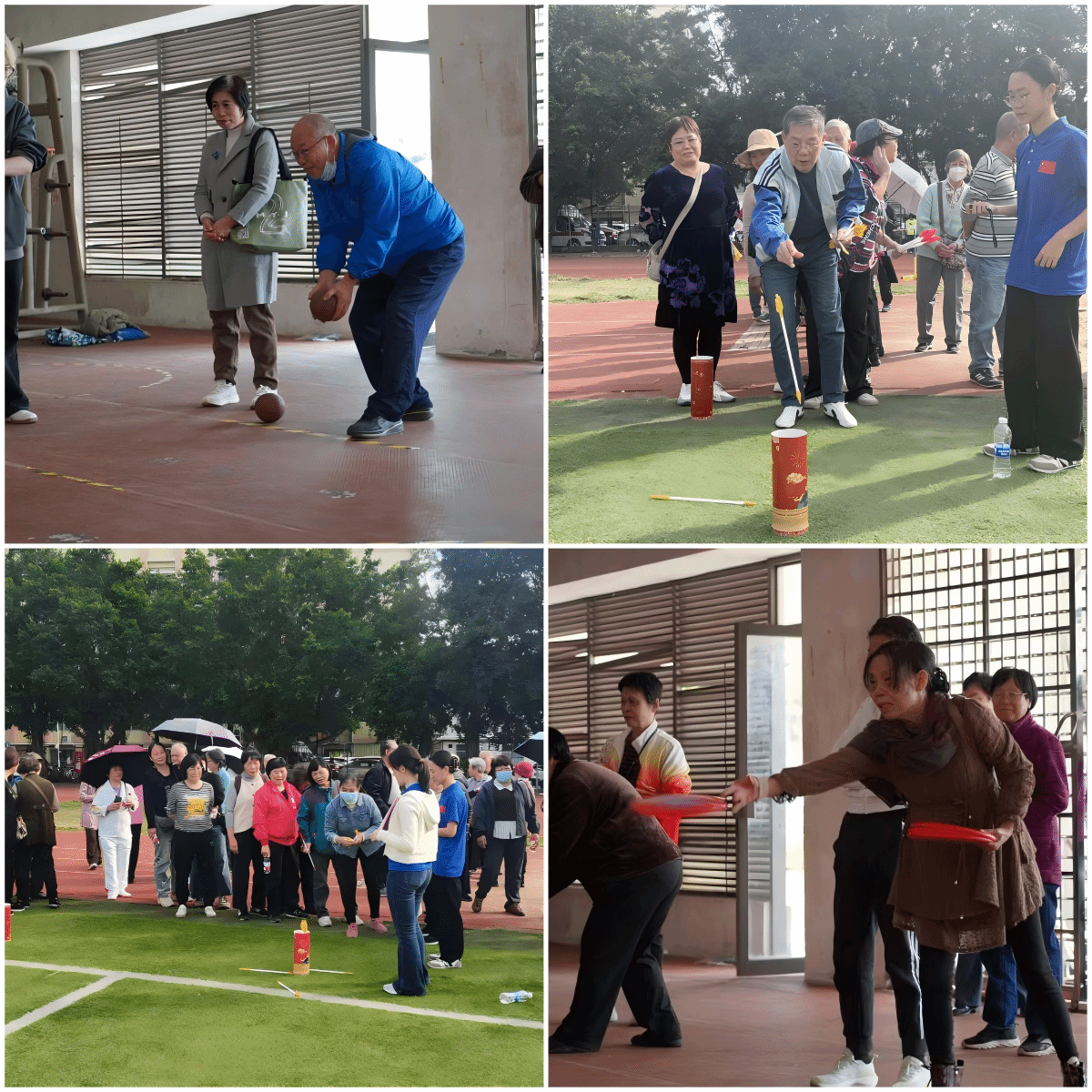 本次运动会两校区结合自身场地特点,设置了适配离退休人员体能的趣味项目,“双龙戏珠”考验协作,“无限接近”挑战精准,“投壶”重拾传统乐趣,“投沙包”唤起童年回忆。各项运动既避免过度劳累,又让老同志能专注享受喜爱的项目。湛江校区的“双龙戏珠”项目区,两名离退休教职工挽手夹着气球稳步前进,配合默契,周围掌声与加油声此起彼伏;投壶区,72岁的李老师眯着眼瞄准壶口,投中时激动地拍手大笑,“几十年没玩过了,没想到还能中!”东莞校区的快乐飞碟项目,彩色飞碟在空中划过弧线,离退休教职工追着飞碟小跑,脸上洋溢着孩童般的纯真笑容;模拟保龄球区,张老师投出的“球”击倒了大半“瓶”,旁边的老伙伴们纷纷起哄“再来一个!”比赛过程中,离退休人员工作部的工作人员全程贴心陪伴,为老同志递水、擦汗,及时解答疑问,确保老同志活动安全有序。