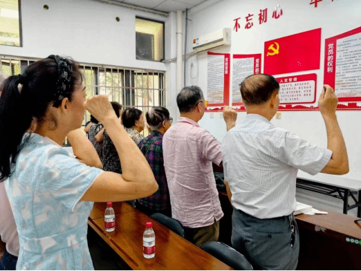 活动伊始,全体党员在支部书记巫林泉同志的带领下,庄重地重温了入党誓词。每一句誓言都饱含着对党的忠诚和对共产主义事业的坚定信念,这不仅是一次对初心的重申,也是一次对使命的再承诺。重温入党誓词,让每一位党员都深深感受到自己作为一名共产党员的责任和担当。